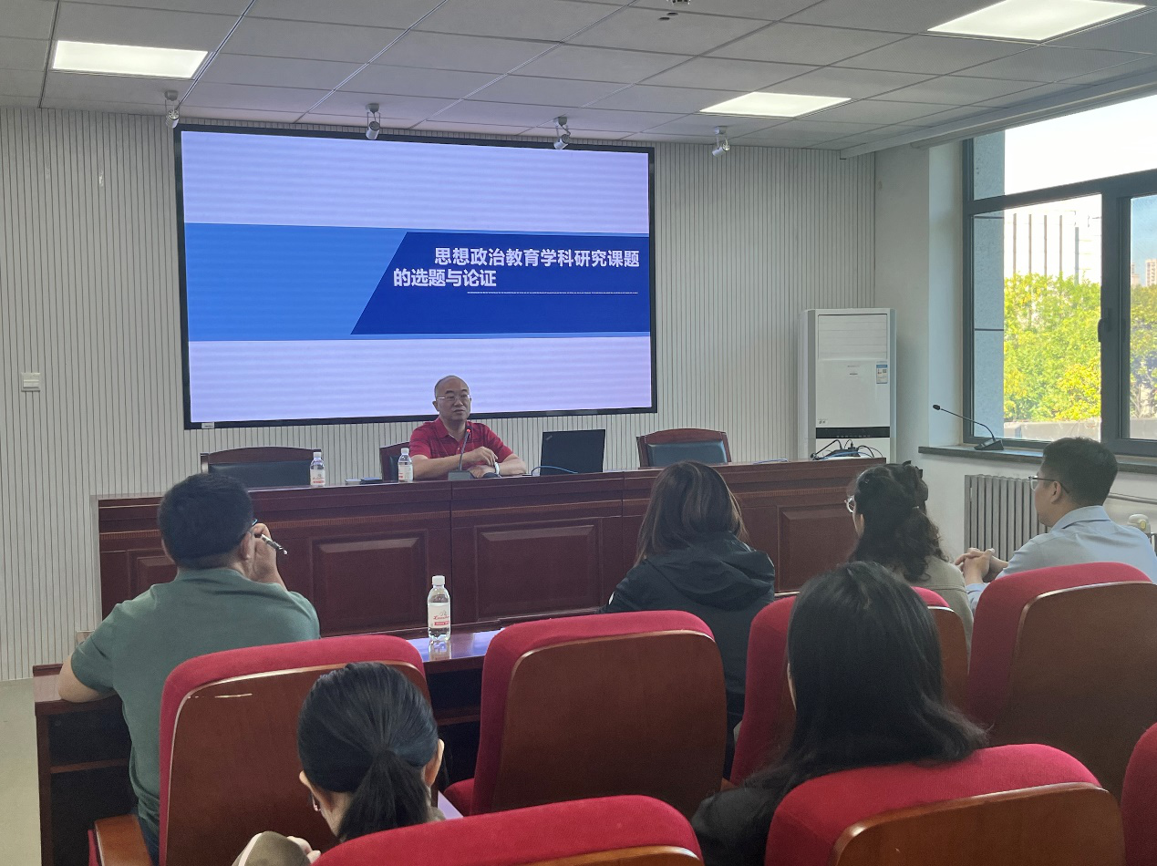 在讲座中,冯刚教授系统梳理了思想政治教育学科发展40年取得的显著成果,介绍了思想政治教育学科的特点、建设成果及新时代创新方向,总结了思想政治教育学科40年发展的规律性认识。他还从研究选题、课题申报书撰写、课题申报中的常见问题等三个方面,对思政学科课题申报进行了讲解,勉励大家立足已有研究基础,借鉴他人成功经验,紧贴热点话题,做好科研选题工作。要注重研究创新和研究规范,避免研究中的一些常见问题。最后,他结合自身科研开展和科研成果,具体阐述了如何做好科研选题与论证工作。