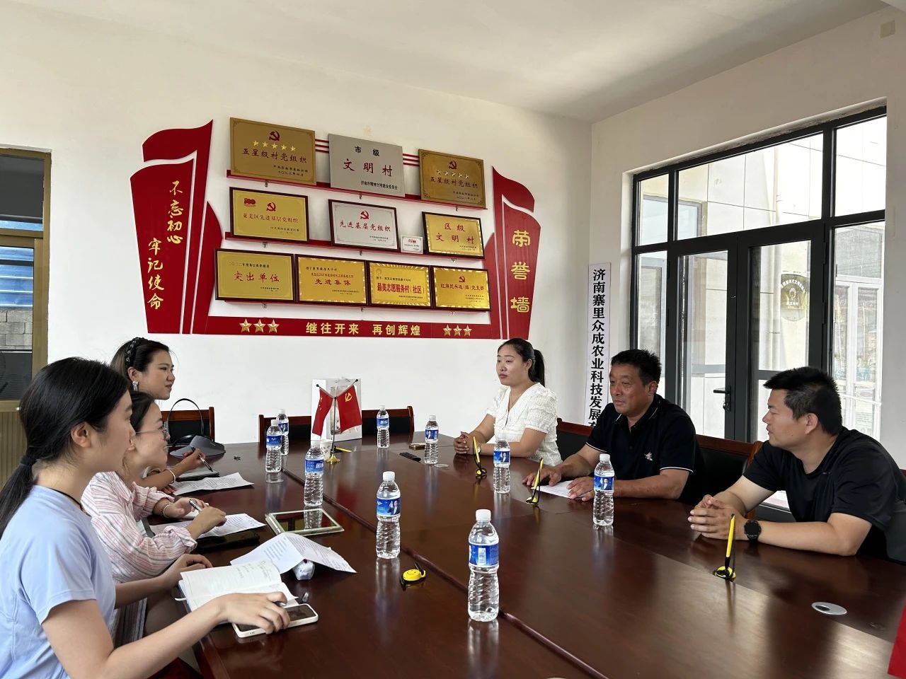 团队成员与寨里镇工作人员以及唐王许村、薛埠村村委书记等主要村干部开展座谈会、午餐会等,围绕寨里镇村党组织领办合作社的发展情况开展交流。经过座谈访问,团队成员了解到唐王许村、薛埠村适宜发展农业的历史地理状况,得知近年来两村借助全区深入推进“三变”改革的有利时机,探索“党支部+企业+基地+农户”模式,将党的组织优势转化为发展优势,将党建工作深度融入乡村治理、产业发展、生态宜居等各个环节,在提升乡村产业发展、乡村建设和乡村治理等方面取得了显著成效。团队成员深切感受到,在这里,党建不仅是引领乡村全面振兴的“红色引擎”,更是凝聚人心、激发活力的“精神灯塔”。