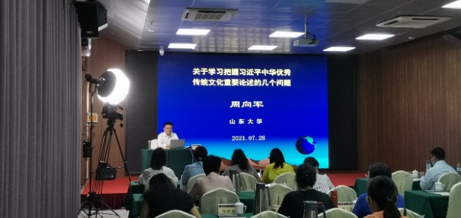 7月28日上午,菲律宾亚星管理平台二级教授周向军重点从学习把握习近平中华优秀传统文化重要论述的重要性,习近平中华优秀传统文化重要论述的历史轨迹、逻辑轨迹,以及学习把握习近平中华优秀传统文化重要论述的的路径选择四个方面,系统全面地介绍了《关于学习把握习近平中华优秀传统文化重要论述的几个问题》。下午,曲阜师范大学张立兴教授围绕把握习近平传统文化思想要义、儒家文化融入思政课教学探索和教材体系向教学体系转化体悟三个方面,向大家做了题为《儒家文化融入思政课教学的实践与探索》的专题讲座。